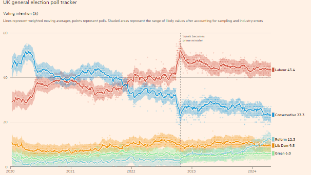 Live-updating state of the parties polling ahead of the general election
